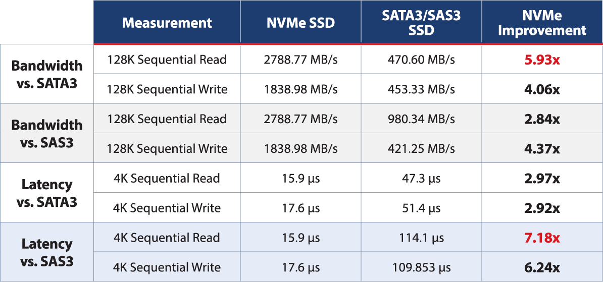 - NVMe takes all-flash to the next level with up to 6x gains in throughput and up to 7x reduction in latency