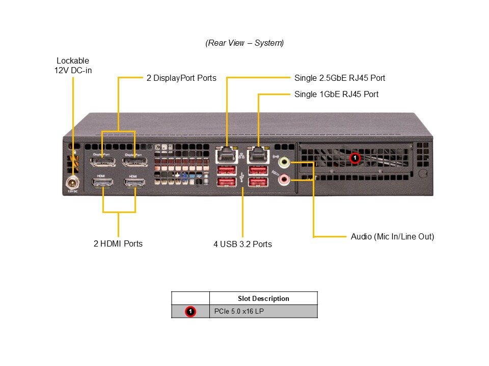 • 1 PCIe 5.0 x16 (in x16) LP slot