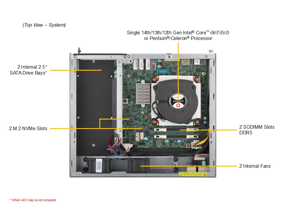 • (*Requires additional parts, please see the optional parts list for details. For more details on PCIe slot configuration options, please refer to the system callout images above.)