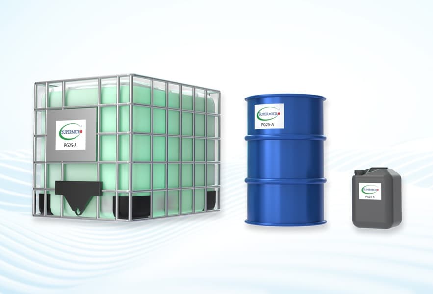 Supermicro Coolant is a high-performance, PG-based synthetic liquid coolant engineered specifically for direct-to-chip liquid cooling in high-density AI and HPC data centers, delivering long-term thermal and chemical stability, broad compatibility with metals, plastics, and elastomers (including EPDM and silicone), advanced multi-metal corrosion protection, and superior anti-bacterial performance.
