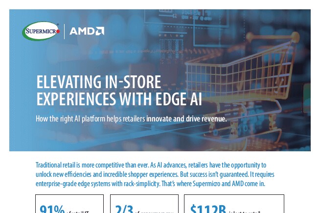 El comercio minorista tradicional es más competitivo que nunca. A medida que avanza la IA, los minoristas tienen la oportunidad de descubrir nuevas eficiencias y experiencias increíbles para los compradores. Pero el éxito no está garantizado. Requiere sistemas de vanguardia de nivel empresarial con la simplicidad de un rack. Ahí es donde AMD en juego Supermicro AMD .