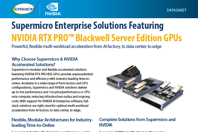 Solutions Supermicro équipées de GPU NVIDIA RTX PRO™ Blackwell Server Edition