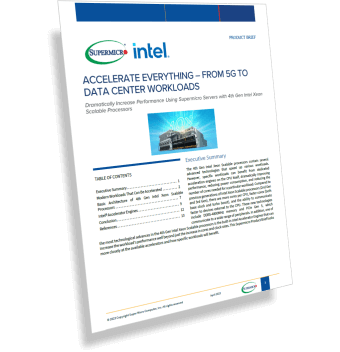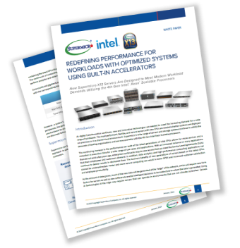 第5世代 Intel®Xeon Xeonプロセッサーおよび第4世代 IntelXeonScalableプロセッサーを搭載したSupermicro X13システムにより、幅広い一般的なワークロードでより高いパフォーマンスと効率性を実現できます。CPUに直接組み込まれたIntelのAccelerator Enginesにより、より多くの処理をタスク専用のアクセラレータにオフロードすることができ、CPUサイクルを実際のワークロードの計算のために解放し、パフォーマンスを向上させます。