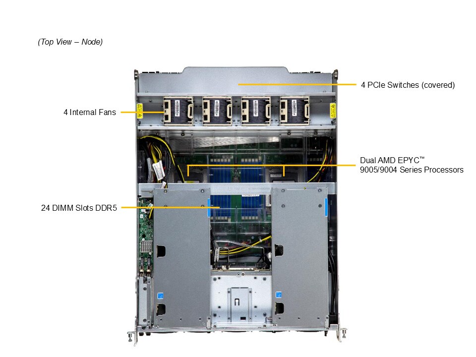 2U LHS Hyper Riser card with 4 PCIe 5.0 slots |