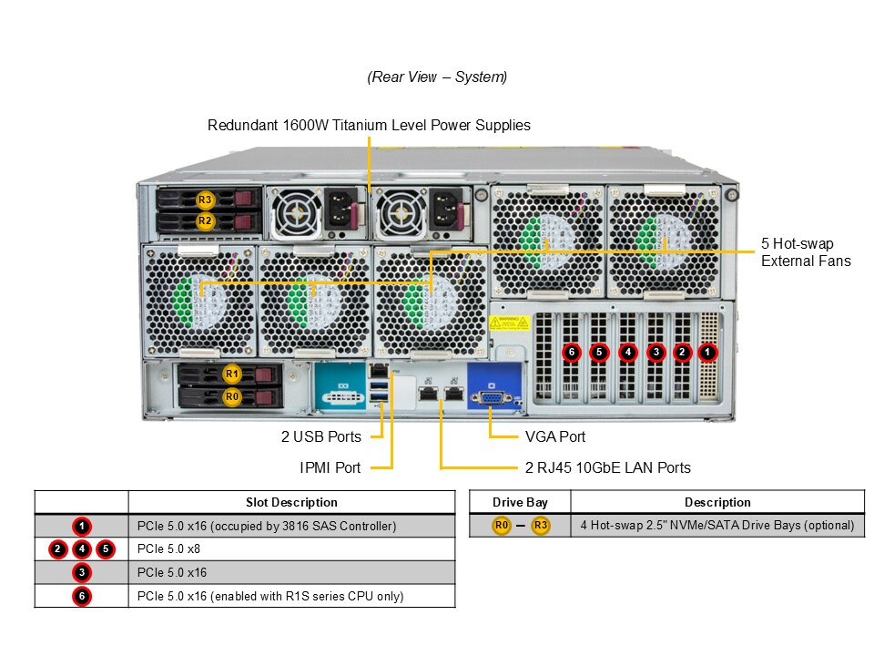 • 4 rear hot-swap 2.5" PCIe 5.0 x8 NVMe* drive bays