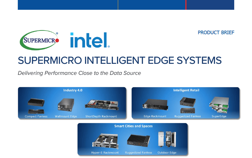 Supermicro builds intelligent edge solutions that deliver high-performance compute, unparalleled edge AI capabilities, and reliability needed to provide superior application performance in a broad range of environments. With Supermicro’s intelligent edge solutions companies are able to accelerate innovation, scale their deployments, realize new efficiencies, and reduce overall costs.